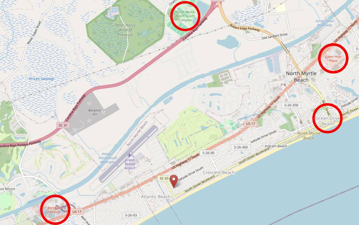 Our little beach house is located near the heart of North Myrtle Beach, South Carolina in the Crescent Beach community. You'll find that you are about 3 to 4 minute walk to the beach, and about 5 minutes from popular restaurants, Barefoot Landing shopping, and about 10-15 minutes to some of the great shows and attractions of Myrtle Beach and North Myrtle Beach!
